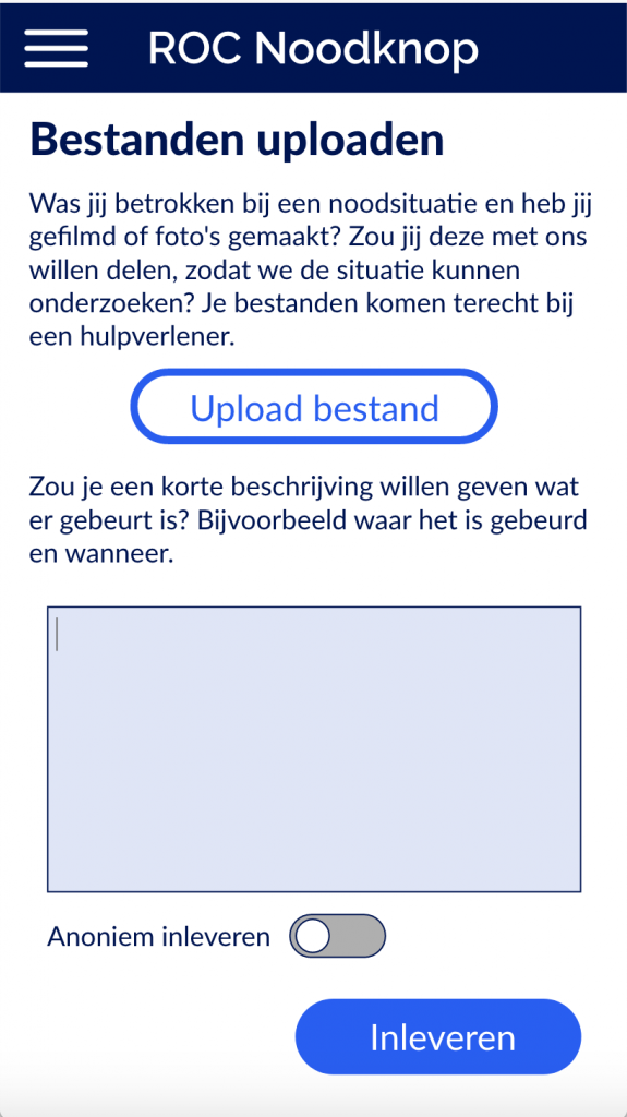 Verder is het ook nog mogelijk om filmpjes en foto’s van de noodsituatie te delen. Dit kan voor het ROC Mondriaan handig zijn, zodat deze achteraf kan zien wat er tijdens de noodsituatie gebeurd is.